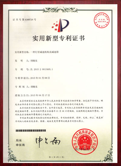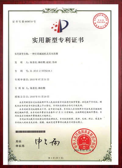 一种行星减速机及减速箱专利证书