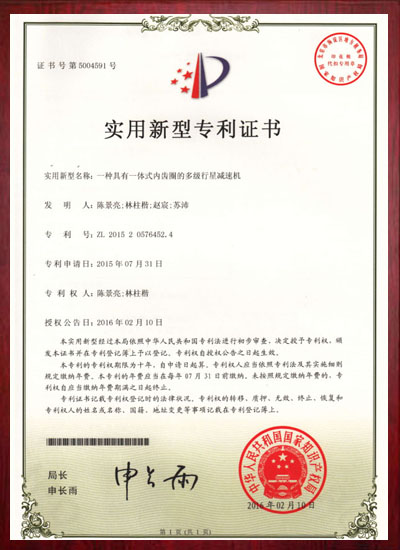 一种有一体式内齿圈的多级行星减速箱专利证书