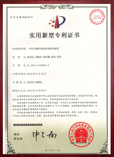 一种自动贩卖机的转盘驱动装置专利证书